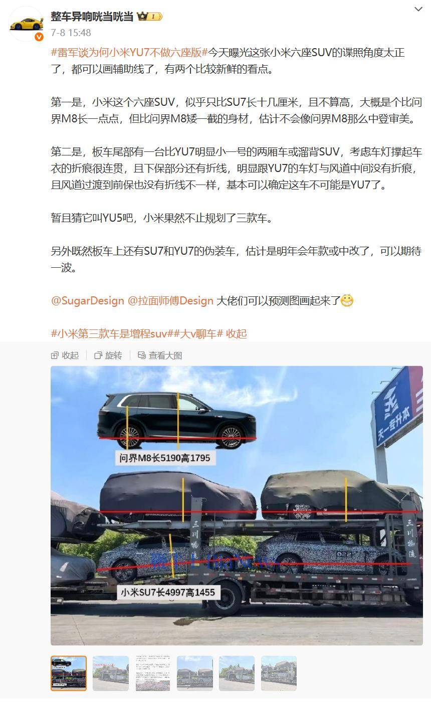 本文鏈接:http://knowith.com/news-1-11926.html小米增程SUV新車型諜照再現,尺寸細節曝光引發熱議