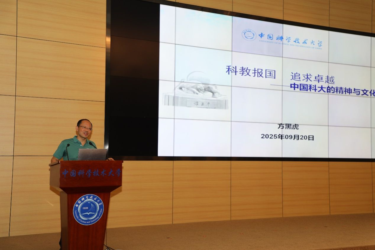 學校檔案文博院執(zhí)行院長方黑虎以《科教報國 追求卓越——中國科大的精神與文化》為題,圍繞“中國科大的精神溯源”“文化標識中的科大精神”“科教報國:科大精神的價值取向”“追求卓越:科大精神的實踐路徑”四個部分展開闡述。他深入闡述了抗大精神、“兩彈一星”精神、科學家精神共同孕育了“科教報國、追求卓越”的科大精神;他回溯了中國科大的創(chuàng)校歷程,詳細解讀了校徽、校訓、校風、校歌的深刻內(nèi)涵,指出科大精神與紅專并進的校訓一脈相承;通過學習抗戰(zhàn)中的科大先生和新時代的科大校友的先進事跡,他指出科大人對科大精神矢志不渝的堅守與代代相傳;通過介紹中國科大教育創(chuàng)新、科技創(chuàng)新、人文關懷等方面的創(chuàng)舉,他道出了科大精神歷經(jīng)67年堅持不懈的偉大實踐。