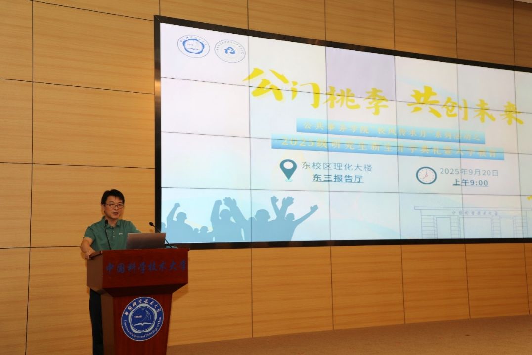 教師代表朱偉教授講話。他以“國之大者”“腳踏實地”和“韌性”三個關鍵詞寄語新生。他指出,作為公共事務學院的學生,應具備開闊的視野和宏大的格局,深刻理解國家所需、人民所盼,應時刻關注科技進步如何惠及社會,思考公共政策如何增進民生福祉,探索國家治理如何應對復雜挑戰(zhàn)。同時,要秉持科大“理實交融”的傳統(tǒng),深入實踐、研究真問題,避免脫離實際的“網(wǎng)吧式科研”,真正做“接地氣”的學問。面對未來學習與生活中的挑戰(zhàn),他鼓勵同學們培養(yǎng)“韌性”,既要專注學術(shù),也要用心生活,通過豐富的校園活動和積極的人際交往,保持身心健康、增強抗逆能力,成長為有溫度、有擔當?shù)臅r代新人。
