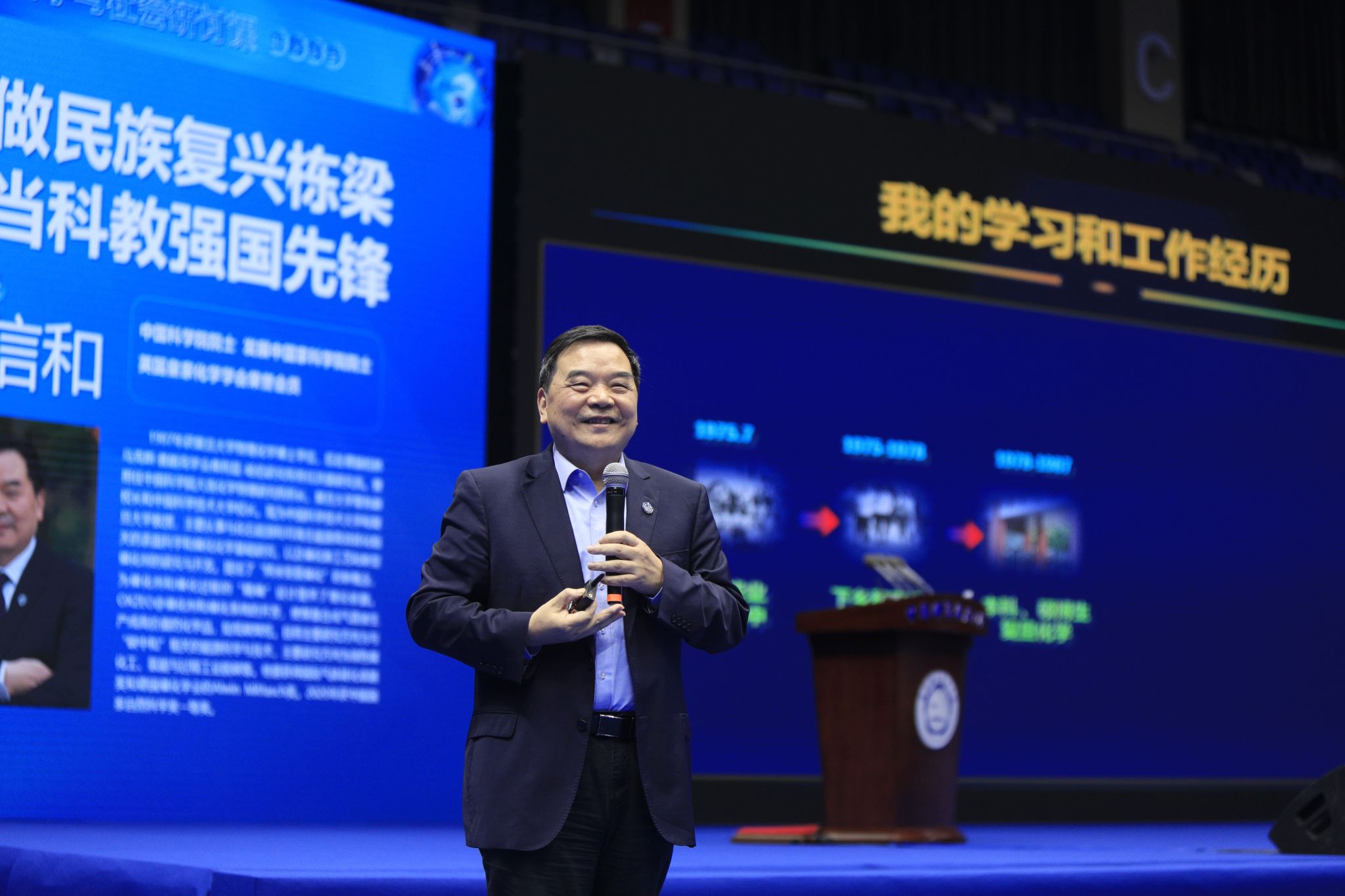 結(jié)合自身在能源革命與碳中和技術(shù)領(lǐng)域的研究實(shí)踐,包信和指出,實(shí)現(xiàn)“雙碳”目標(biāo)必須依靠科技創(chuàng)新推動(dòng)產(chǎn)業(yè)結(jié)構(gòu)與能源體系深刻變革。他鼓勵(lì)同學(xué)們?cè)鷮?shí)打好數(shù)理基礎(chǔ),關(guān)注國(guó)家戰(zhàn)略需要,將個(gè)人興趣與社會(huì)需求相結(jié)合,“學(xué)得文武藝,報(bào)效中華民族”。