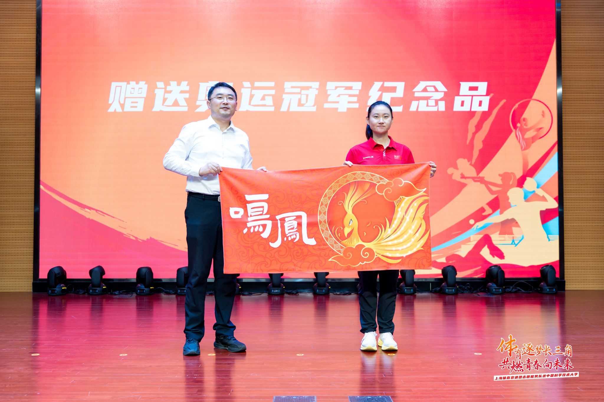 鐘天使代表上海市體育局團委向周宇贈送其奧運同款“鳴鳳”毛巾,這份珍貴的禮物承載著奧運冠軍在賽場上無數次拼搏的汗水與信念,成為滬皖兩地在體育領域深化交流的美好見證。