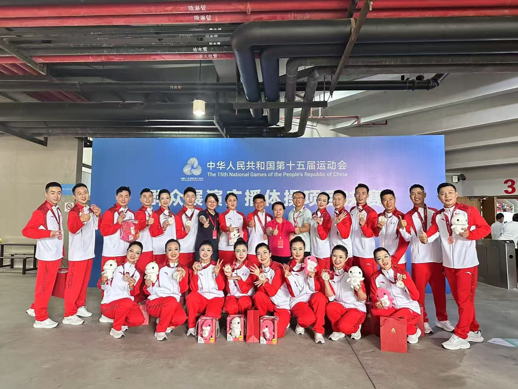 9月21日,由國家體育總局主辦的第十五屆全國運動會群眾展演廣播體操項目決賽在珠海圓滿落幕。我校體育教師竇盛凱作為安徽省代表隊的重要一員,全程參與賽事角逐。他與隊友們并肩協作,憑借精湛的專業水準和高度的團隊默契,在激烈競爭中脫穎而出,最終一同斬獲全國三等獎的優異成績,為安徽省獲得榮譽的同時,也充分展現了我校體育教育工作者的風采。