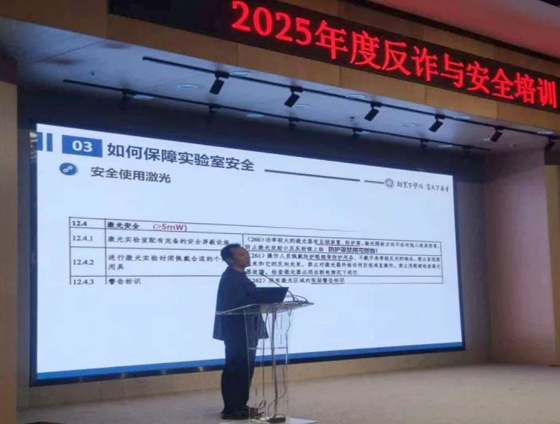 此外,上研院還特邀學校實驗室安全辦公室副主任張憲鋒與康橋派出所警官,聯合舉辦了“反詐與實驗室安全”專題培訓,張憲鋒圍繞實驗室規范操作、化學品管理及應急處理等內容,進行了深入細致的講解,進一步強化了在院科研人員的實驗安全意識,為研究院科研活動的安全開展奠定堅實基礎。同時,組織開展了消防廣播與警鈴系統測試,檢驗消防應急通訊系統的可靠性,確保緊急時刻指揮指令能夠精準傳達。