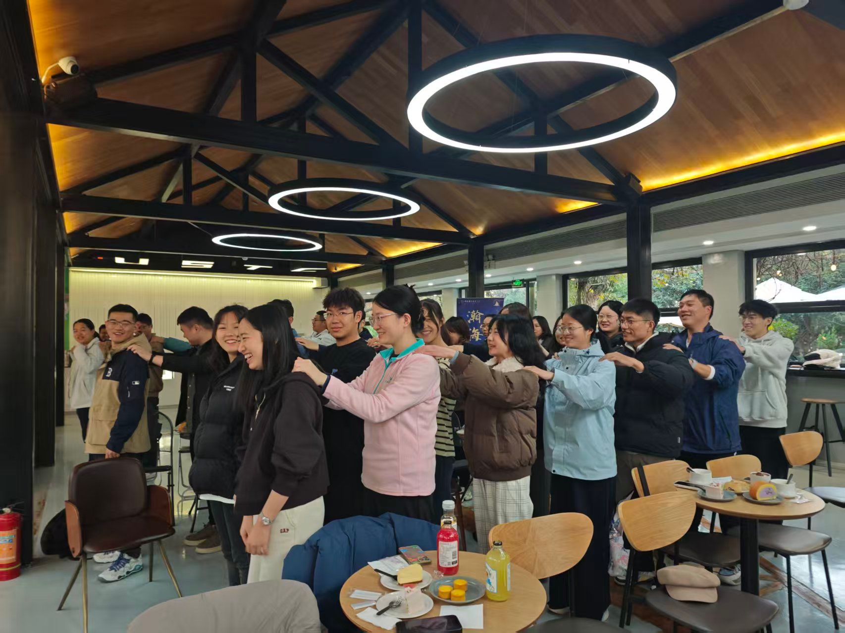 活動伊始,在三位老師的親切帶領下,全場師生共同體驗了“暖心按摩操”互動小游戲。簡單有趣的動作配合,不僅有效緩解了久坐的疲憊,更迅速拉近了彼此的距離,現場笑聲陣陣,氣氛溫馨融洽。
