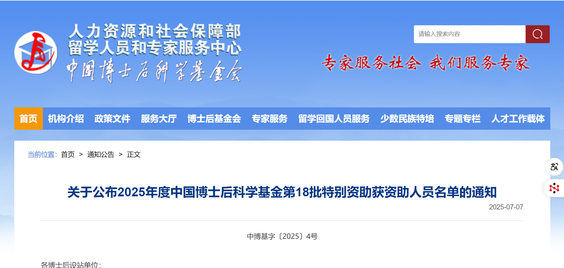根據《中國博士后科學基金資助規定》和《中國博士后科學基金資助指南(2025年度)》,經專家評審和評審結果公示,現決定對1196人給予中國博士后科學基金第18批特別資助,資助人員名單詳見附件(部分獲資助人員略)。