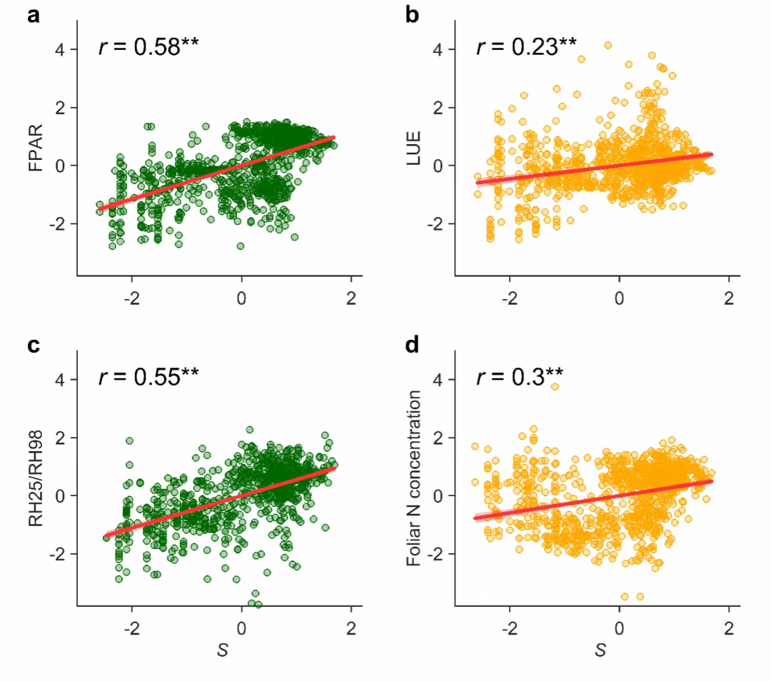 “此次研究強調(diào)了樹種多樣性主要是通過放大森林的最大光合作用能力來驅(qū)動光合作用,而不是通過延長生長季節(jié)的持續(xù)時間。”張永光介紹,該研究不僅為全球森林資源管理、生物多樣性保護和碳匯潛力評估提供了關鍵的觀測證據(jù),也為生態(tài)系統(tǒng)功能的遙感監(jiān)測提供了新的技術路徑。