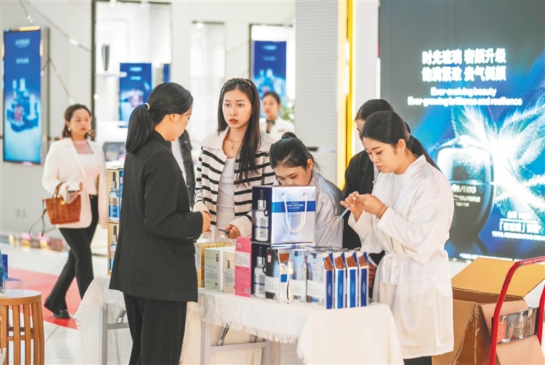 十二月十五日,位于海口的海控全球精品免稅城內,消費者在選購商品。海南日報全媒體記者 李天平 攝