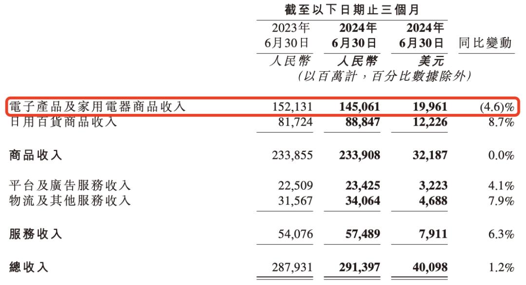 在今年Q2的財報中,商品收入(通過京東平臺銷售的商品所產(chǎn)生的收入)占到京東總收入的超8成,其中,“電子產(chǎn)品及家用電器商品”收入同比下滑4.6%,去年同期這一收入的增速為11.36%,京東CFO單甦在財報中解釋說這是受去年高基數(shù)的影響。