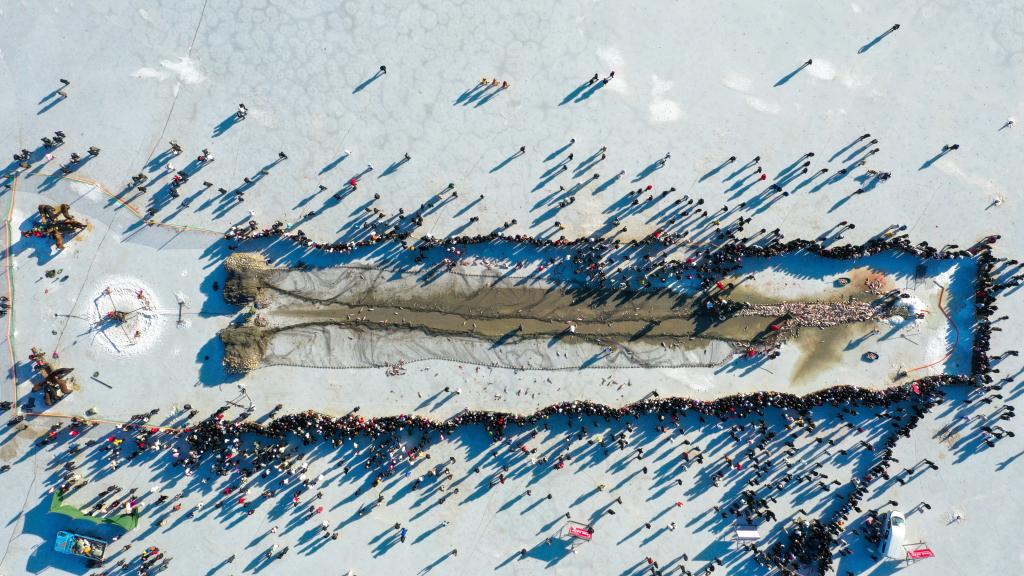 吉林松原查干湖:“冰湖騰魚”又一年