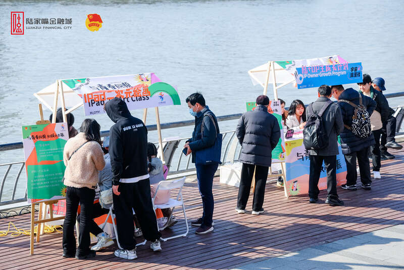 青年社團在陸家嘴濱江擺攤介紹各自的項目。陸家嘴金融城供圖