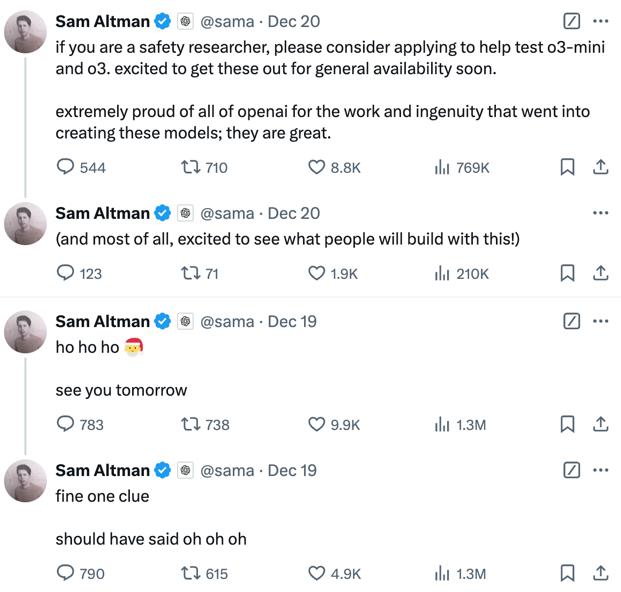 掌門人奧特曼不用多說了:從發布前按捺不住以“oh oh oh”暗示新品,邀請大家申請o3測試權限;