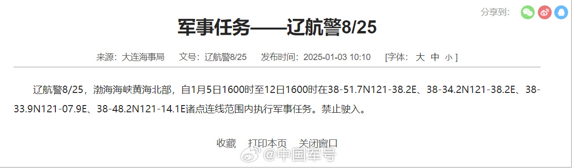本文鏈接:http://knowith.com/news-23-154896.html航行警告!渤海海峽黃海北部執行軍事任務