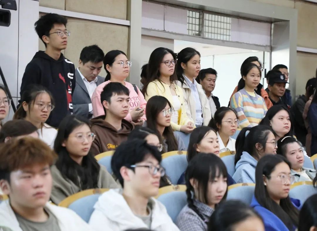近兩個小時的報告,師生們都在安靜地聆聽,不忍打斷,僅有偶爾拿起的手機記錄下這珍貴時刻。直到講座結束,雷鳴般的掌聲才再次響起,沒有人愿意是那個第一個停住鼓掌的人。報告結束后,張定宇還與現場師生進行了互動,回答了學生的提問。