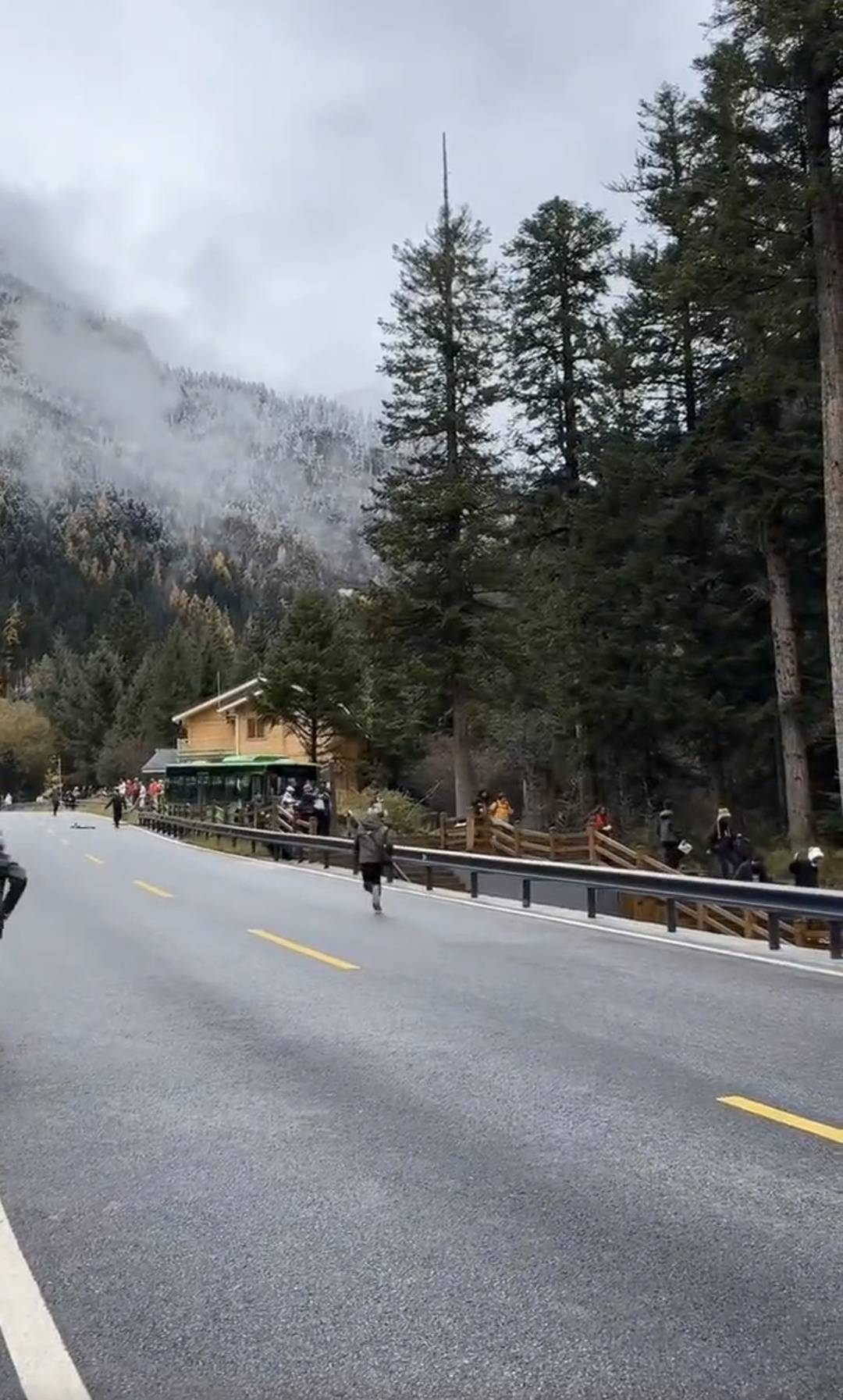11月1日,有游客發布視頻顯示,九寨溝景區內,一輛綠色觀光車失控,溜向步道方向。車前方幾位游客急忙逃離躲避。