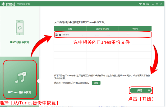 除了iTunes,數(shù)據(jù)蛙蘋果恢復(fù)專家也是一款值得推薦的數(shù)據(jù)恢復(fù)軟件。它支持直接從iTunes備份中掃描并預(yù)覽短信內(nèi)容,選擇恢復(fù)時不會影響手機(jī)中其他數(shù)據(jù)的使用。用戶只需下載并打開軟件,選擇相應(yīng)的iTunes備份文件進(jìn)行掃描,然后在掃描結(jié)果中選擇并恢復(fù)所需短信即可。