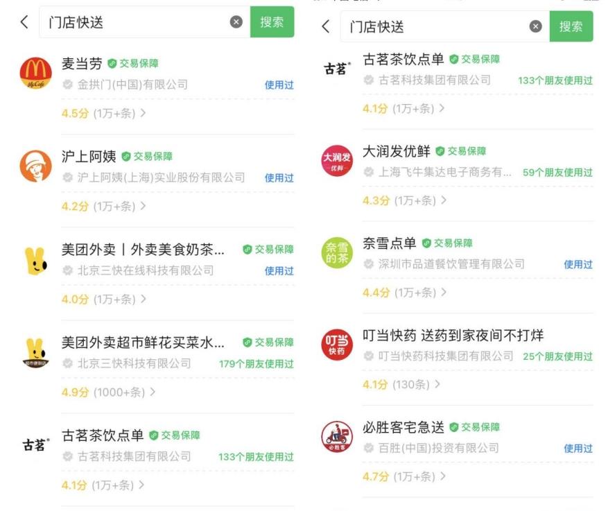 2023年2月,微信試水“門店快送”小程序,將餐廳、茶飲、食材、生鮮等多類店鋪做了集合,消費者只用通過微信“發現”頁面的“小程序”進入“門店快送”,再跳轉到商家小程序就可進行外賣點單。配送方式靈活,可由門店自主配送,或由美團、達達、順豐同城等第三方平臺提供。
