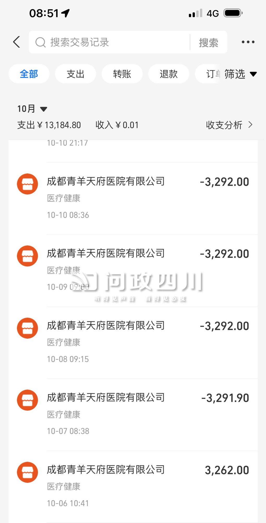 11月13日,成都市青羊區衛生健康局(簡稱“衛健局”)通過“問政四川”平臺回復確認,該局調查了解之后,成都青羊天府醫院表示愿意退還部分診療費,共計8000元。