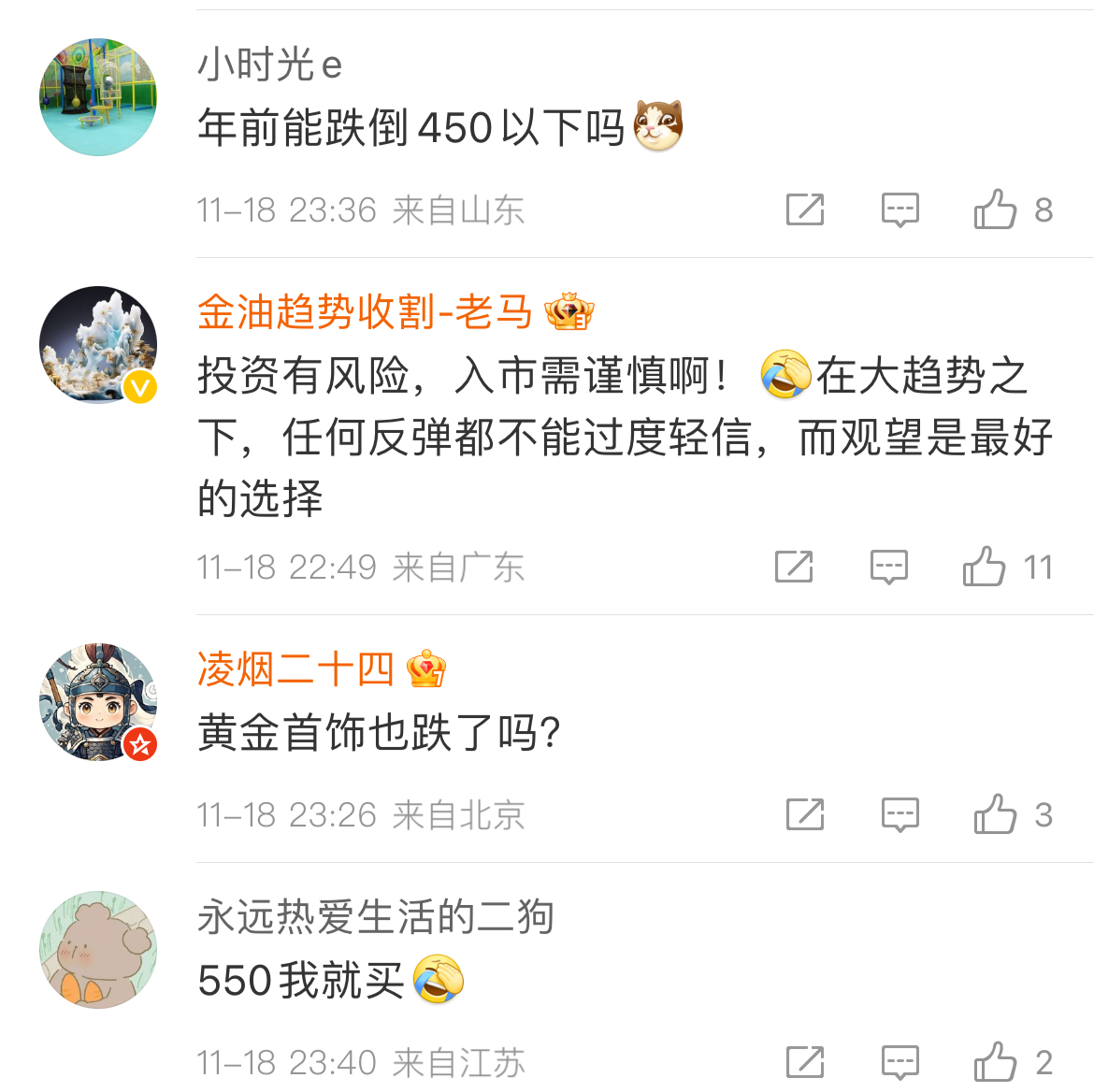 對此,部分網(wǎng)友表示應該謹慎投資,等到再降再入,也有部分網(wǎng)友認為“來都來了,也是有機會買上金條了”。業(yè)內人士表示,長期看,黃金的避險需求仍然存在;臨近年底,市場需求量也將有所提高,投資者需要注意規(guī)避短期波動帶來的風險。