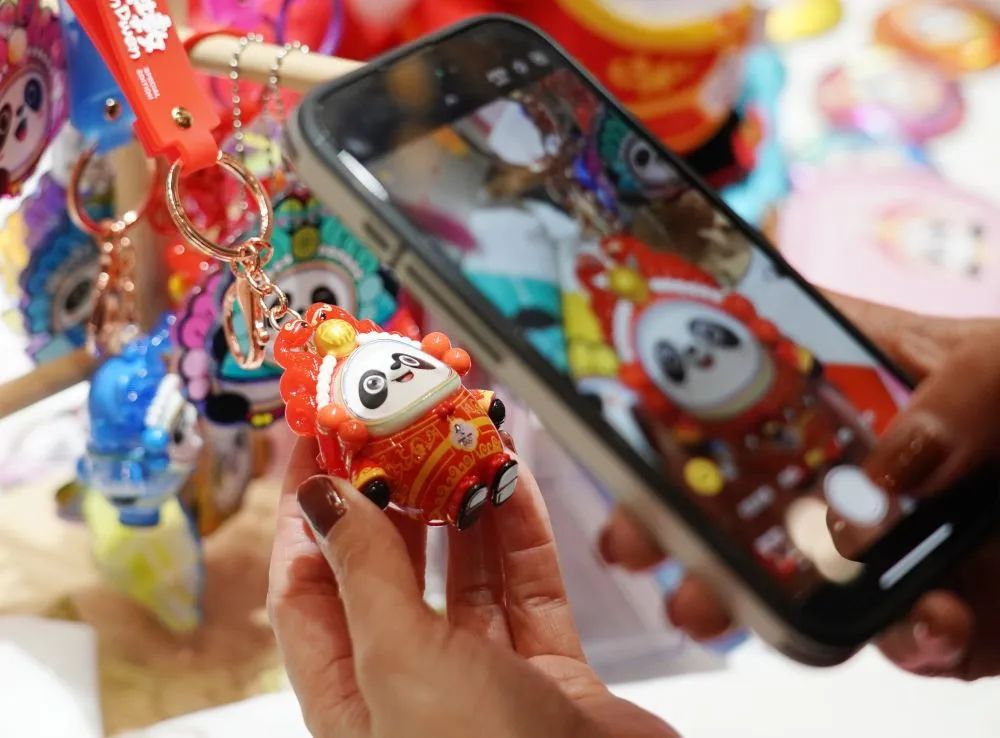 據介紹,“蛇墩墩”以民間傳說《白蛇傳》為靈感來源,頭部裝飾以傳統京劇中的“白娘子”和“小青”造型為藍本,有“靈蛇獻瑞”的寓意。本次活動現場發布的“蛇墩墩”系列新品包括毛絨玩具、徽章、鑰匙扣等,其中5個“蛇墩墩”手辦備受關注。它們手持如意、葫蘆、壽桃、桃花、元寶等道具,分別用福、祿、壽、喜、財表達“五福臨門”的美好祝愿,傳遞幸福與吉祥。