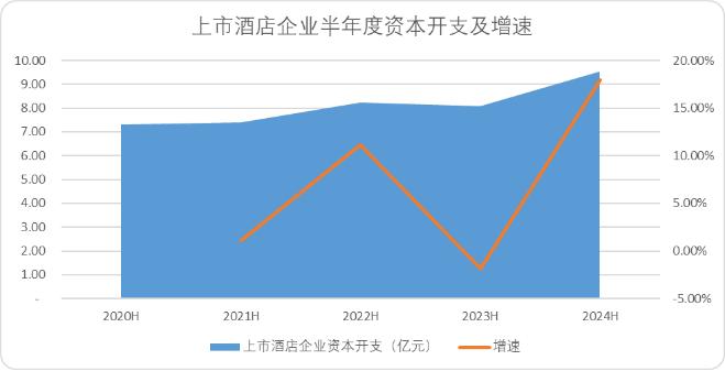 圖: 2024年上半年酒店企業資本開支及增速,來源:Choice金融客戶端