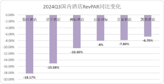 圖: 2024Q3國內酒店RevPAR同比變化,來源:企業財報