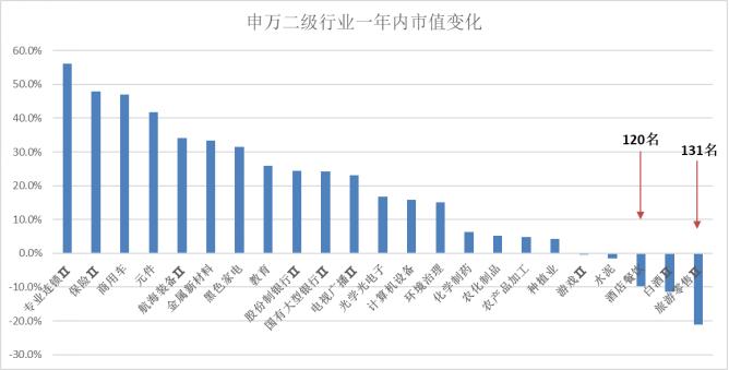 圖:申萬二級行業一年內市值變化,來源: Choice金融客戶端