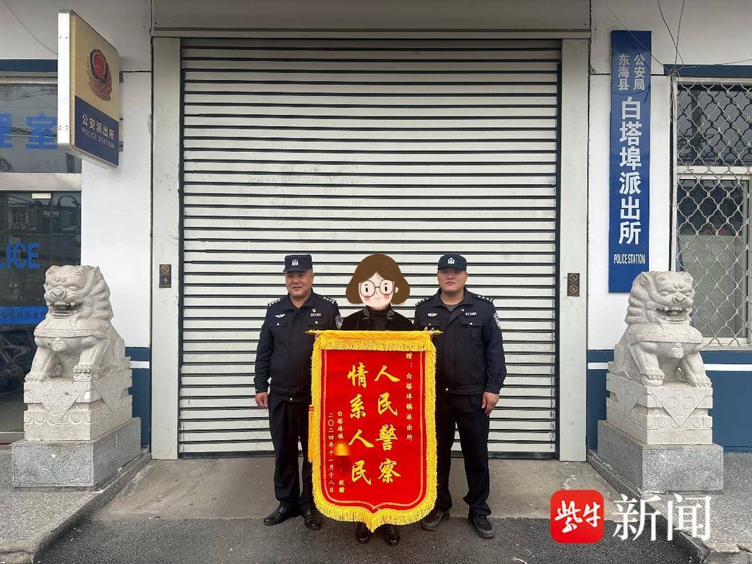 “警察同志,你們真是神速,兩個小時就幫我找回了電動車!”11月19日,家住連云港市東海縣白塔埠鎮的成女士將一面印有“人民警察,情系人民”的錦旗送到東海縣公安局白塔埠派出所,感謝民警汪漢墨快速破案、盡心盡責為其挽回損失。