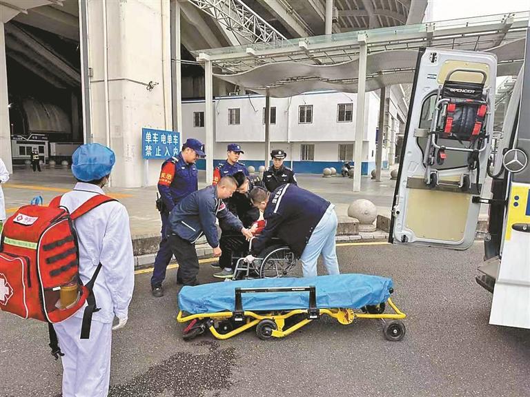 在等待救護車的過程中,民警一直仔細觀察老人的狀態,還查看了老人在摔倒時是否有受傷。醫護人員到達后對老人進行了初步檢查,建議送醫治療。民警與車站工作人員積極開辟綠色就醫通道,將老人一路護送上救護車,由其家屬陪同前往最近的醫院救治。目前,老人身體已無大礙。