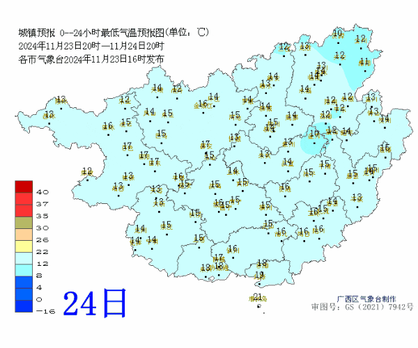 南寧市:今天晚上到明天白天,多云間陰天,偏東風1~2級,最低氣溫16℃,最高氣溫23℃。