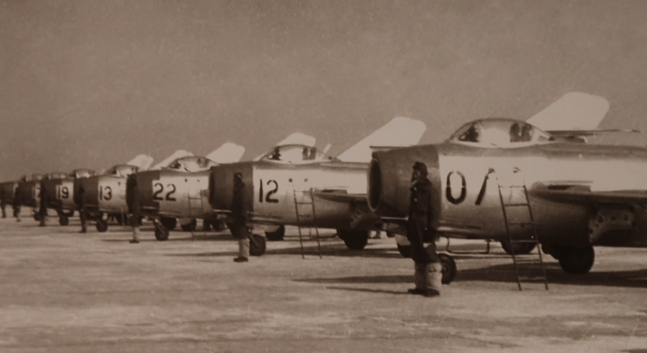 接到命令后,志愿軍空軍第四師第十團二十八大隊大隊長李漢率6架“米格-15”型殲擊機起飛迎擊。年輕的趙志才也在其中,他接替訓(xùn)練時發(fā)生意外而犧牲的朱學(xué)才,擔(dān)任大隊長李漢的僚機。