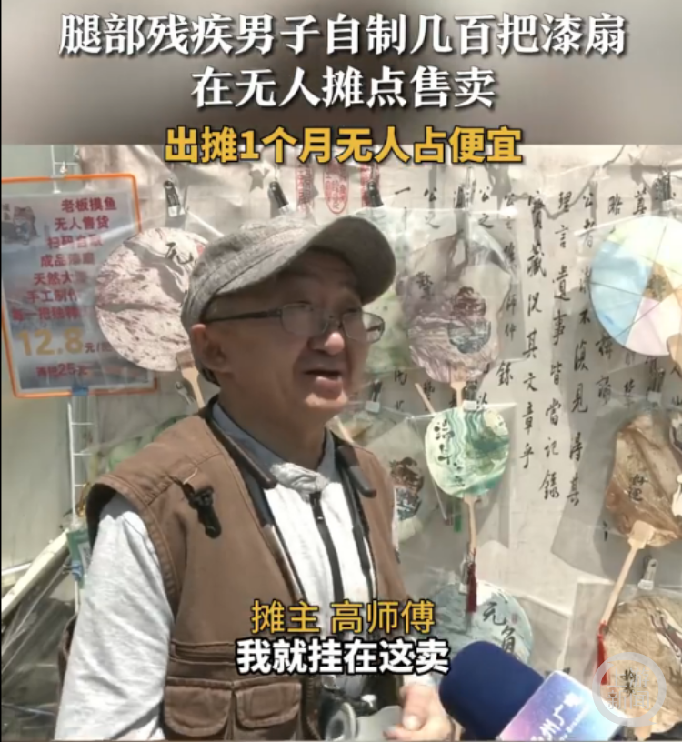 今年6月,江蘇揚州皮市街的一個漆扇攤引發關注,攤主高師傅制作販賣漆扇,因腿部不便當起“甩手掌柜”,沒想到一個月對賬下來,沒有人趁機占便宜。