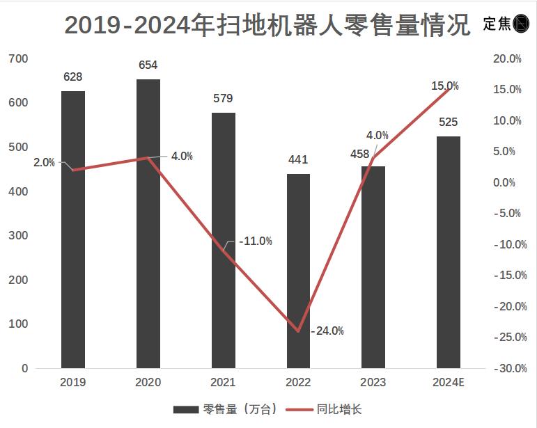 分析師還預測,2024年中國掃地機器人零售量將繼續(xù)上漲,達到525萬臺。