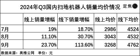 再具體到Q3,奧維云網(wǎng)數(shù)據(jù)顯示,掃地機器人7月、8月、9月的單月銷量不僅出現(xiàn)了同比增長,購買均價也連續(xù)三個月上漲,9月的線下均價達4762元。