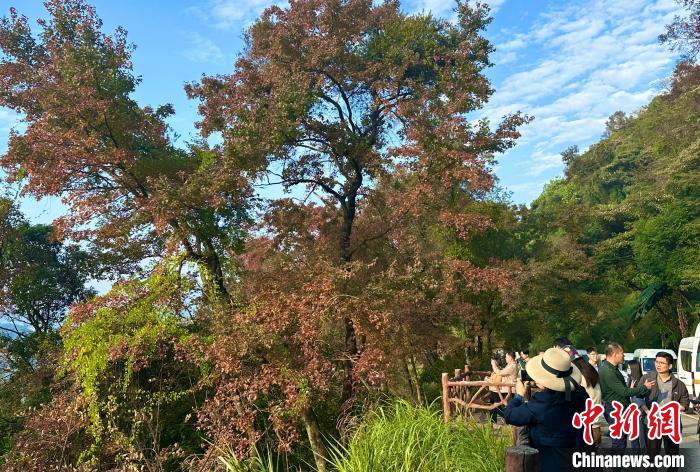 中新網(wǎng)廣州12月6日電(記者程景偉)2024年廣州市石門國家森林公園紅葉觀賞節(jié)6日開幕。該公園素有“廣州香山”之稱,眼下這里的楓葉逐漸變紅,不少游客慕名而來。