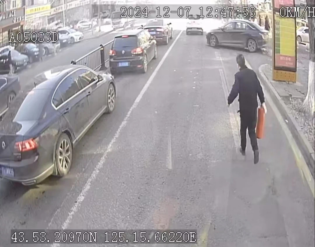 超燃一幕!長春公交人路遇私家車起火 挺身而出協助撲救