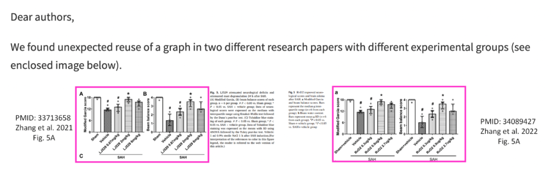 將Zhang推向“學術不端”風口浪尖的,是學術打假人René Aquarius。Aquarius是荷蘭拉德堡德大學醫學中心的一名神經外科研究人員。兩年前,他與同事開展了關于蛛網膜下腔出血的系統性論文回顧工作。他在查閱Zhang發表的相關論文后發現,其論文提供的臨床前動物實驗圖像,存在大量復制拼接的情況,涉嫌學術造假。