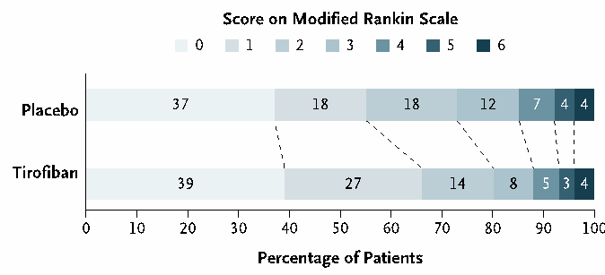 這項名為ASSET-IT的研究(急性腦梗死患者靜脈溶栓后早期應(yīng)用替羅非班的療效與安全性評估Advancing Stroke Safety and Efficacy through Early Tirofiban Administration after Intravenous Thrombolysis)由胡偉教授團隊牽頭設(shè)計并組織實施,聯(lián)合國內(nèi)38家高級卒中中心共同完成,為多中心、隨機、雙盲、安慰劑對照臨床試驗。研究共納入了832例在發(fā)病4.5小時內(nèi)接受靜脈溶栓、但不符合血管內(nèi)治療(取栓)指征的急性非心源性缺血性腦卒中患者。受試者被隨機分配接受為期24小時的替羅非班(糖蛋白IIB/IIIA受體拮抗劑)或安慰劑靜脈滴注治療。研究的主要終點是患者在90天時達到改良Rankin量表(mRS)評分0–1,即獨立生活能力完全或接近完全恢復(fù)的比例。