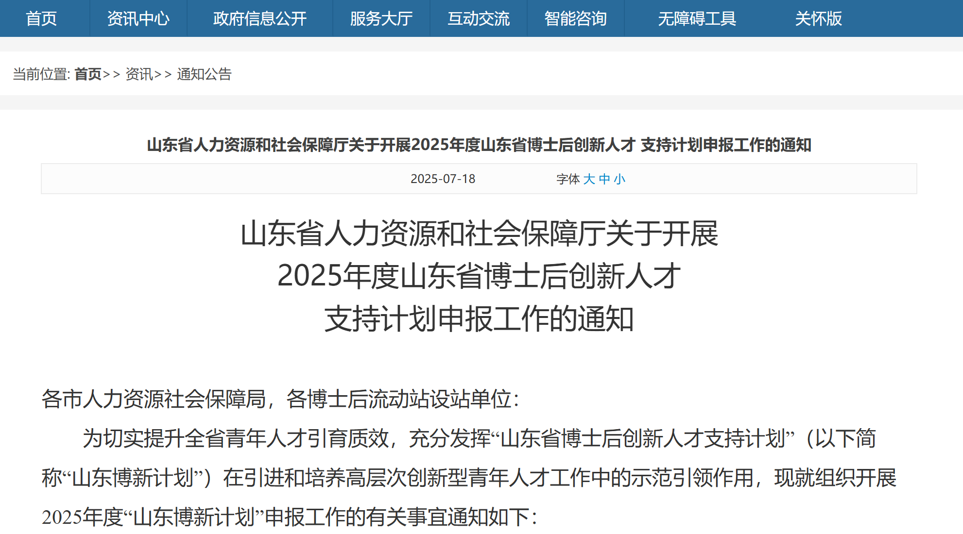 2025年度山東省博士后創新人才支持計劃申報工作啟動