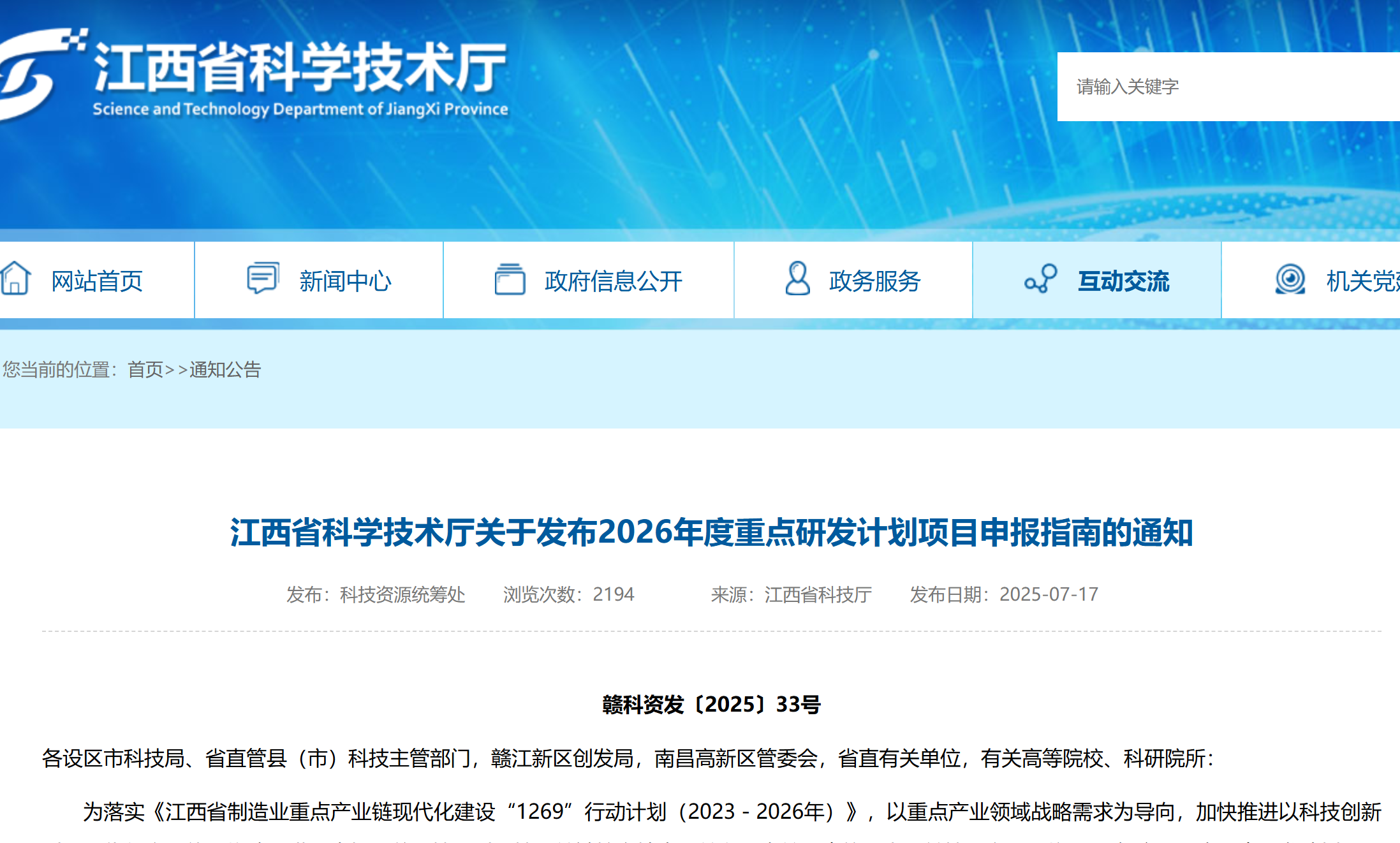江西省發布2026年度重點研發計劃項目申報指南