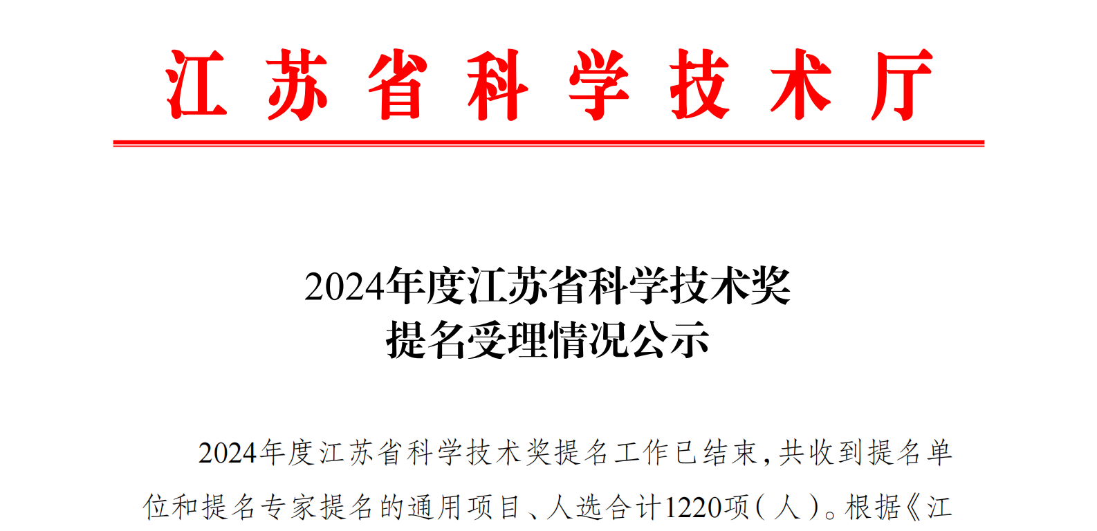 2024年度江蘇省科學技術(shù)獎提名受理情況公示