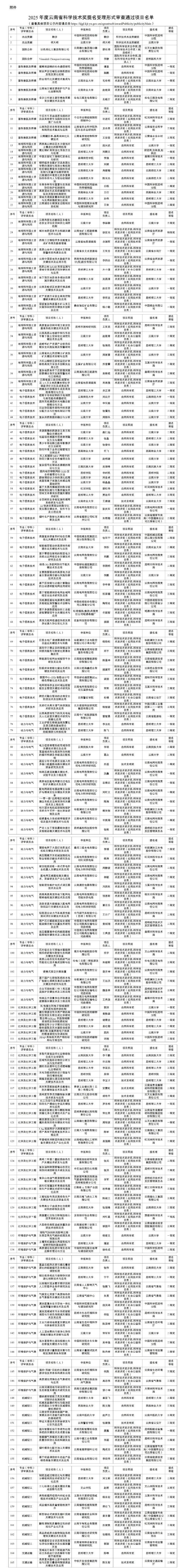 附件:2025年度云南省科學(xué)技術(shù)獎(jiǎng)提名受理形式審查通過(guò)項(xiàng)目名單