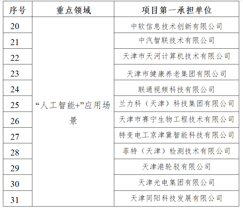 經專家評審等程序,市科技局局長辦公會審議通過了2025年天津市人工智能科技重大專項擬立項項目,現予以公示。