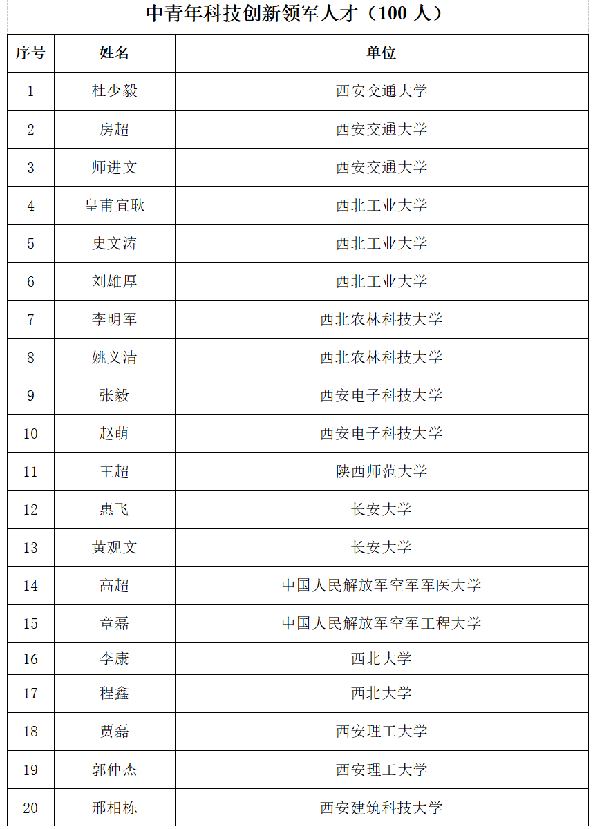 本文鏈接:http://knowith.com/news-4-2315.html2025年陜西省中青年科技創新領軍人才、科技創新創業人才及2026年陜西省青年科技新星人選公布