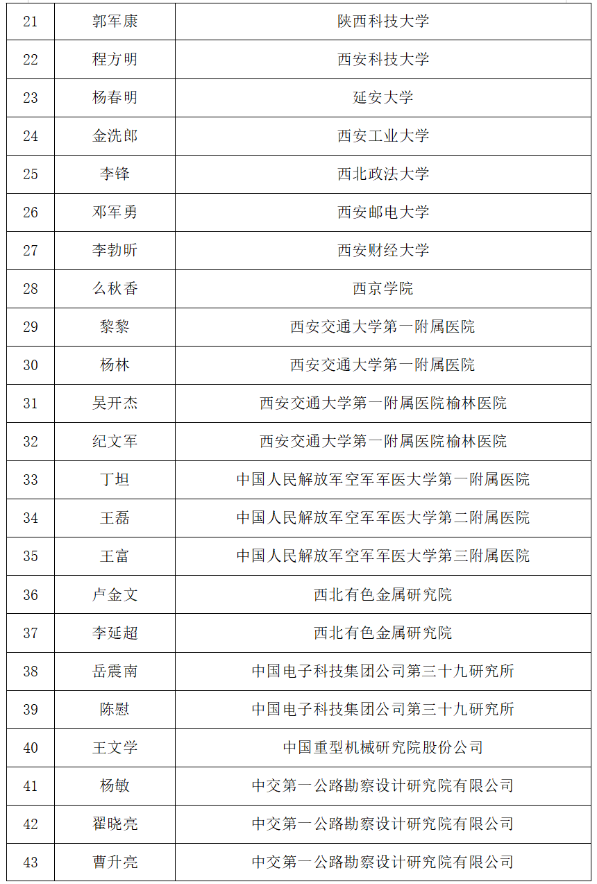 2025年陜西省中青年科技創新領軍人才、科技創新創業人才及2026年陜西省青年科技新星人選公布