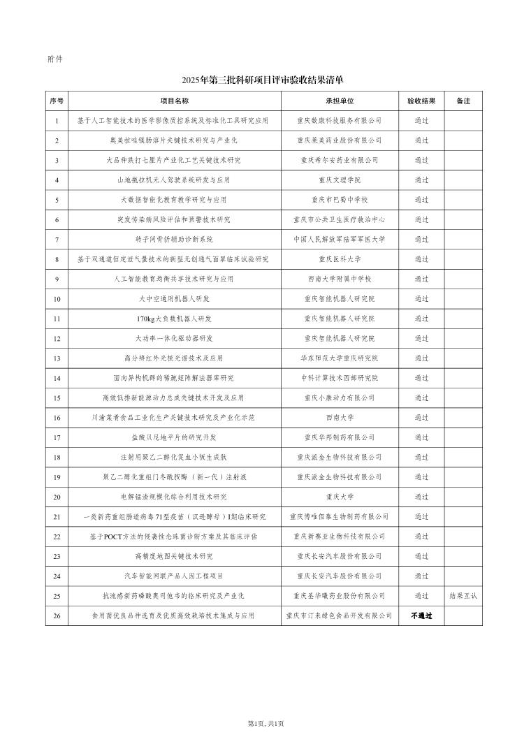 重慶市科學(xué)技術(shù)局關(guān)于2025年第三批科研項目評審驗收結(jié)果的公示