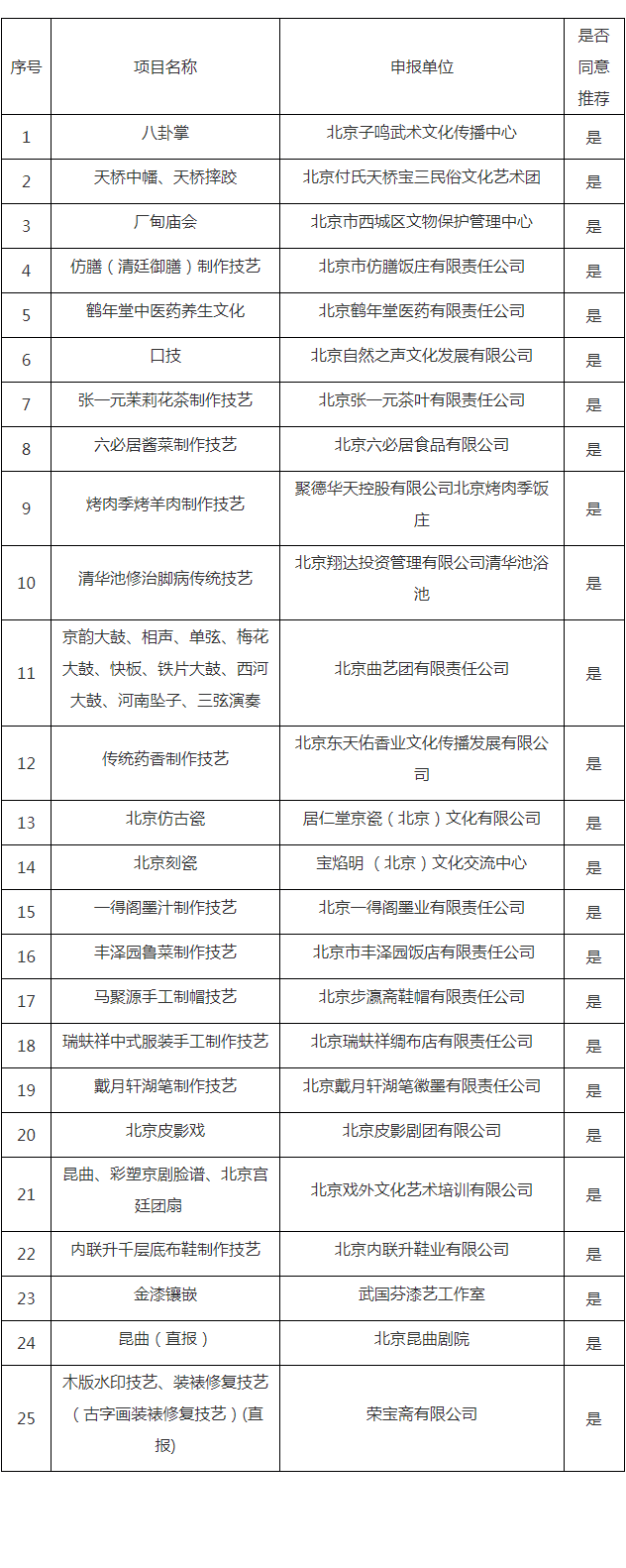 1.經過廣泛征集和專家評審,擬向北京市文化和旅游局推薦廠甸廟會、六必居醬菜制作技藝、戴月軒湖筆制作技藝等25個非物質文化遺產旅游體驗項目參評(見附件)。